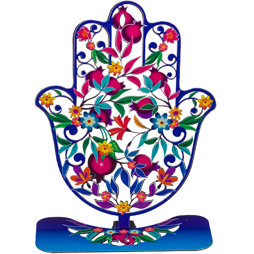 חמסה "פירחוני" חיתוך לייזר עם בסיס, ברכת הבית עברי