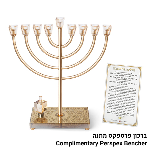 Metal Menorah 38 cm with Golden Crystal Cups- Rose gold Finish with Plaque