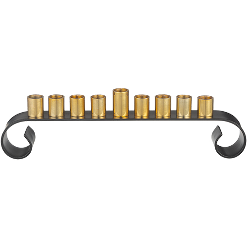 חנוכייה מתכת מהודרת עם קנים זהב 28 ס"מ