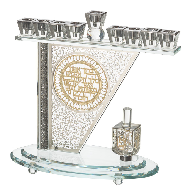 Crystal Menorah 28*27 cm with Metal Plaque and Stones