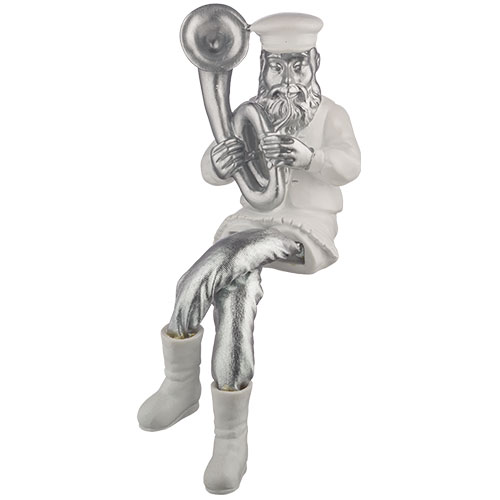 חסיד יושב מפוליריזן לבן עם רגלי בד כסף 25 ס"מ מנגן בטובה