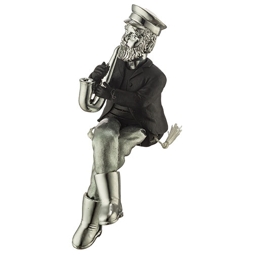 חסיד יושב מפוליריזן שחור עם כסף עם רגלי בד מנגן בסקסופון 19 ס"מ