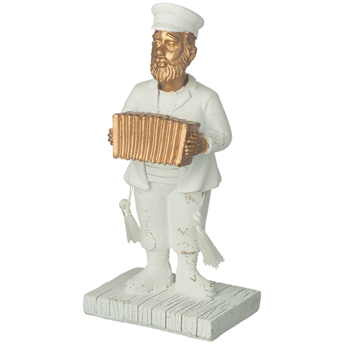 חסיד יושב מפוליריזן לבן עם רגלי בד כסף 25 ס"מ מנגן בטובה