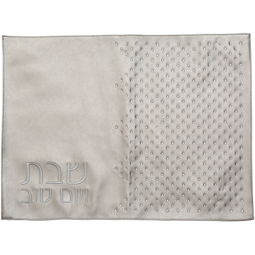 203 כיסוי חלה מהודר דמוי עור לבן וכסף עם הבלטות 45×55 ס"מ