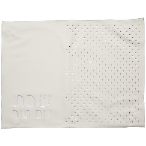 כיסוי חלה מהודר דמוי עור לבן עם הבלטות 42×52 ס"