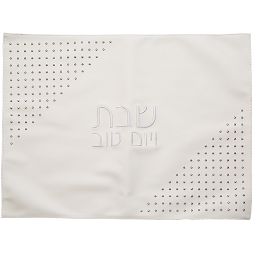 203 כיסוי חלה מהודר דמוי עור לבן עם הבלטות 42×52 ס"מ