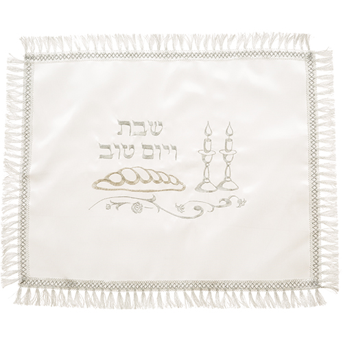 כיסוי חלה לבן מסטן עם ריקמה מהודרת 42×52 ס"מ