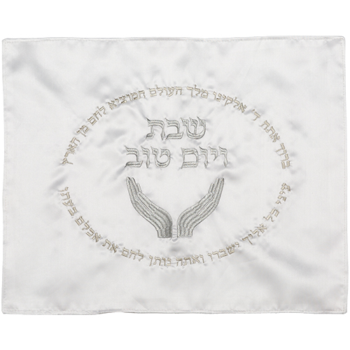 כיסוי חלה לבן רקמה כסף 51X41 ס"מ