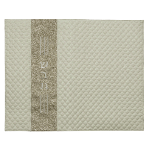 כיסוי חלה מהודר דמוי עור לבן / כסף נצנץ