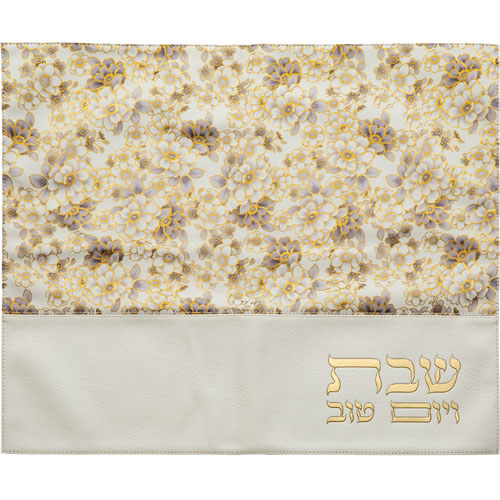 כיסוי חלה מהודר דמוי עור לבן פרחים אפורים 45X55 ס"מ
