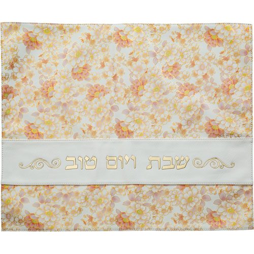 כיסוי חלה מהודר דמוי עור לבן פרחים ורודים 45X55 ס"מ