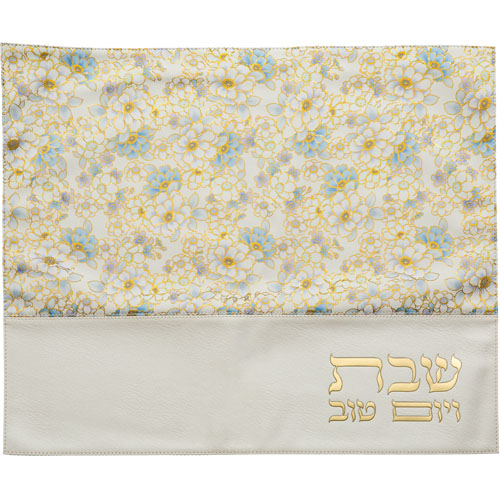 כיסוי חלה מהודר דמוי עור לבן פרחים כחולים 45X55 ס"מ