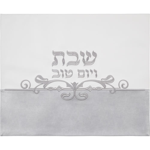 כיסוי חלה מהודר דמוי עור לבן עם רקמה 45X55 ס"מ