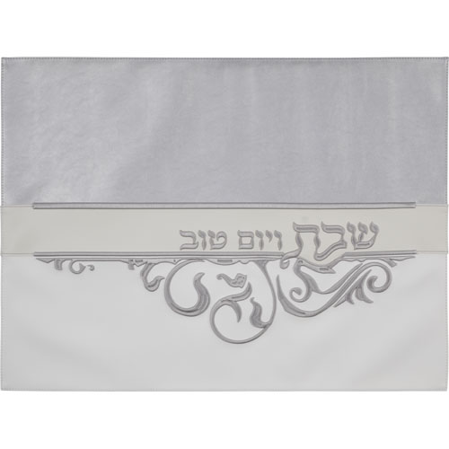 כיסוי חלה מהודר דמוי עור לבן עם רקמה 45X55 ס"מ