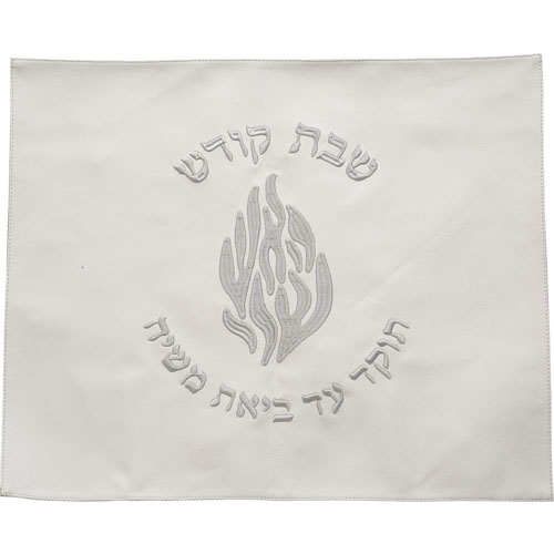 כיסוי חלה פיו לבן האש שלי שבת קודש רקמה כסף 54X45 ס"מ