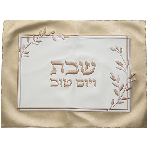 כיסוי חלה לבן מסטן עם ריקמה מהודרת 42×52 ס"מ