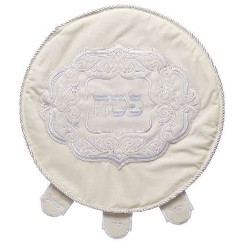 כיסוי פסח קטיפה לבנה עם ריקמה ואבנים 45 ס"מ