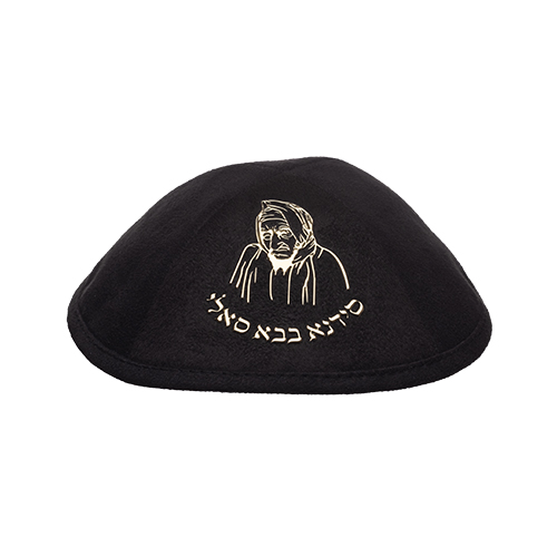 כיפה אולטרא סוויד שחור 19 ס"מ "בבא סאלי" זהב ומקום לסיכה