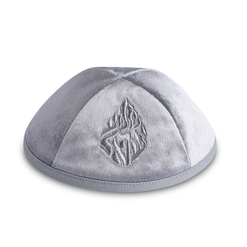 Velvet Kippah "art-man" with Embroidery Size 3- Gray