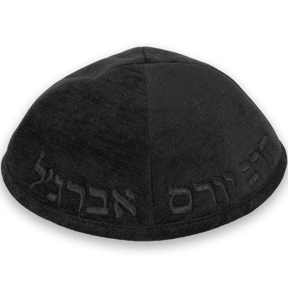 כיפה בד מהודר עם ריקמה "הרב יורם אברגל" – גודל 4 – שחור