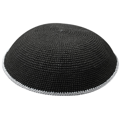 Knitted D.M.C Kippah 20 cm – Sheer Black WITH GRAY RIM