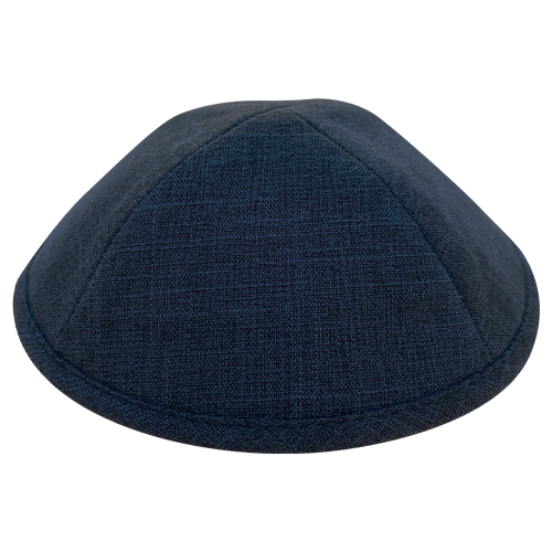 [ כיפה מהודרת משי פשתן כחול כהה 17 ס"מ