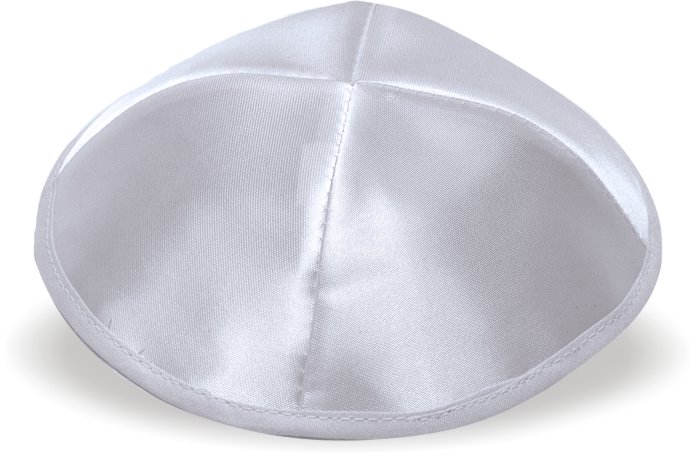 כיפה סטן לבן פס כסף מהודר 17 ס"מ