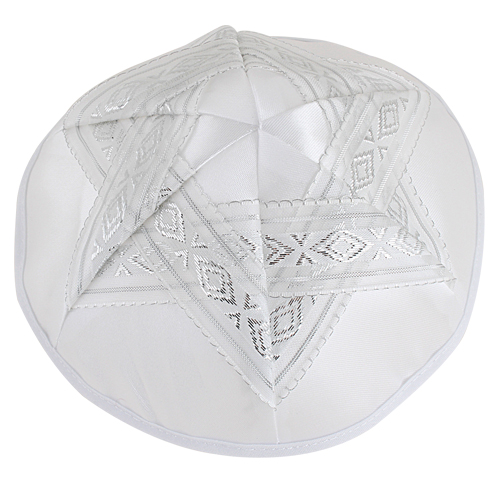 Satin Kippah 19cm- With Silvered Star Of David And Trim _