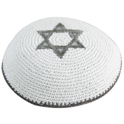 כיפה סרוגה מגן דוד כסף ואפור 17 ס"מ