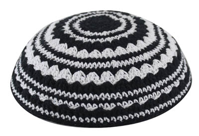 כיפה סרוגה שטיח 18 ס"מ שחור ולבן