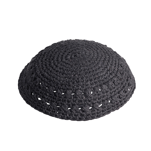 / כיפה סרוגה 15 ס"מ שחור מחורר