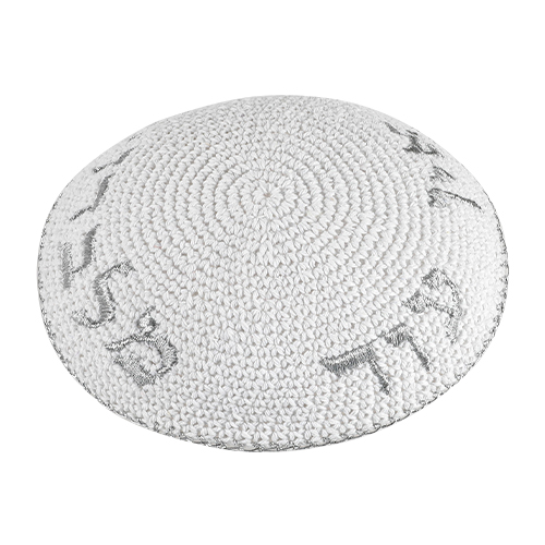/ כיפה סרוגה 16 ס"מ לבן עם רקמה כסף "אין עוד מלבדו"