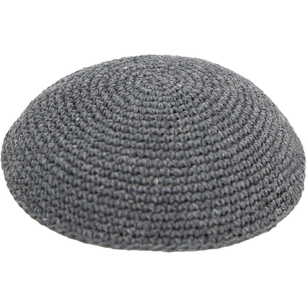 כיפה סרוגה 17 ס"מ אפור כהה חלק – 12 יח