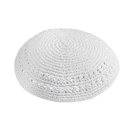 כמות של כיפה סרוגה 17 ס"מ לבן מחורר