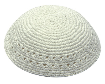 כיפה סרוגה 17 ס"מ לבן מחורר