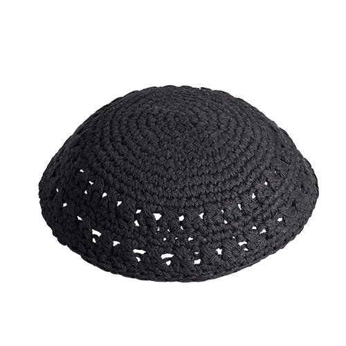 כיפה סרוגה 17 ס"מ שחור מחורר