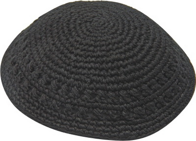 כיפה סרוגה 17 ס"מ שחור מחורר
