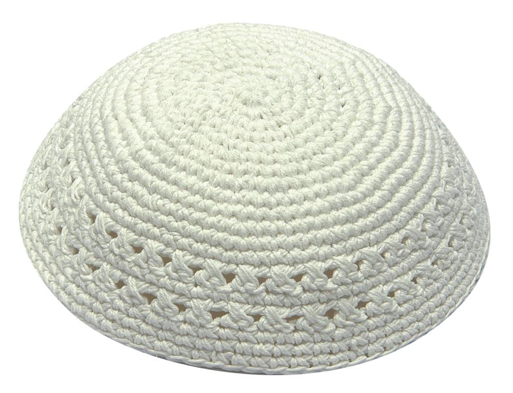 כיפה סרוגה 18 ס"מ לבן מחורר