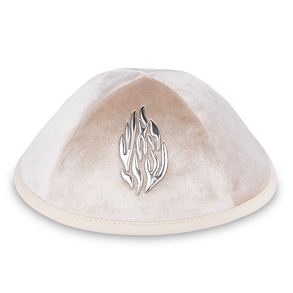 Velvet Kippah "art-man" with Embossed Letters Size 4- Off White