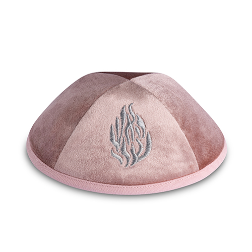 כיפה קטיפה "ארט-מן" עם ריקמה האש שלי גודל 3 – ורוד