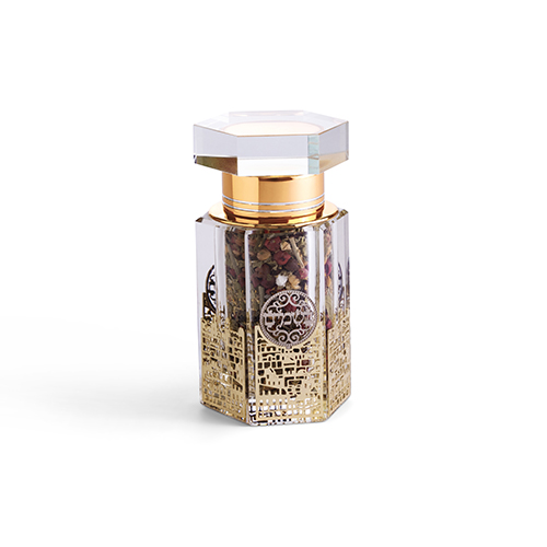/ כלי לבשמים מקריסטל עם פלקטה "ירושלים" 8.5*5 ס"מ עם ציפורן