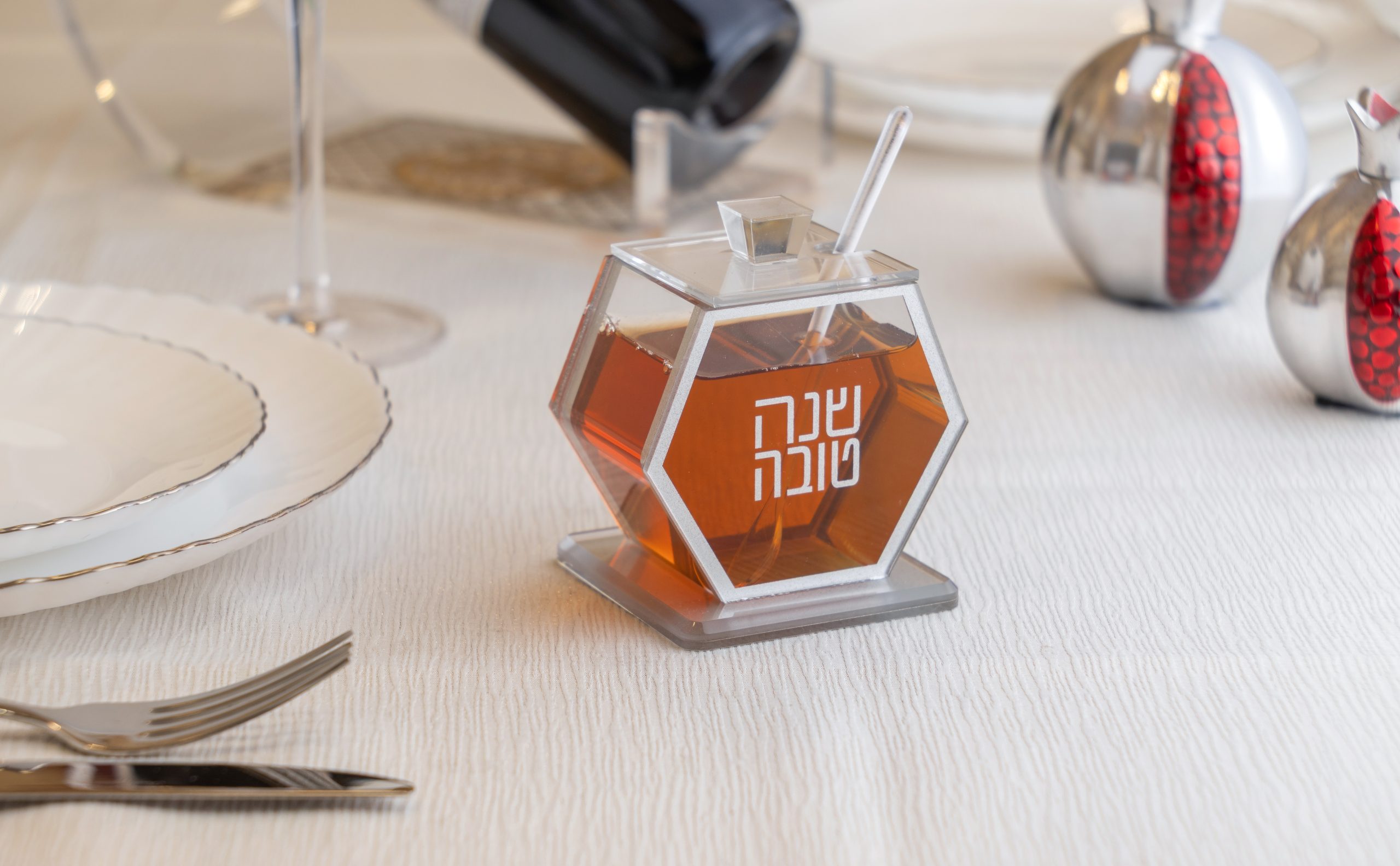 / כלי לדבש פרספקס גימור כסף 8.5 ס"מ