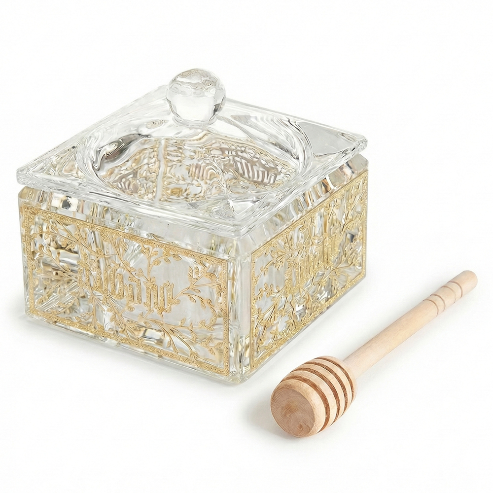 כלי מהודר לדבש מקריסטל עם פלקטה 6 ס"מ