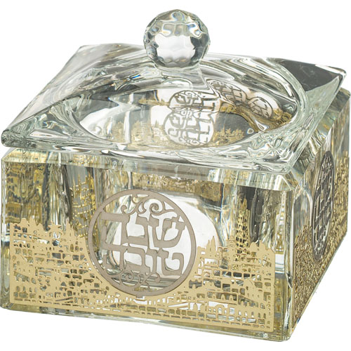Crystal Honey Dish 7*7 cm with Metal Plaque