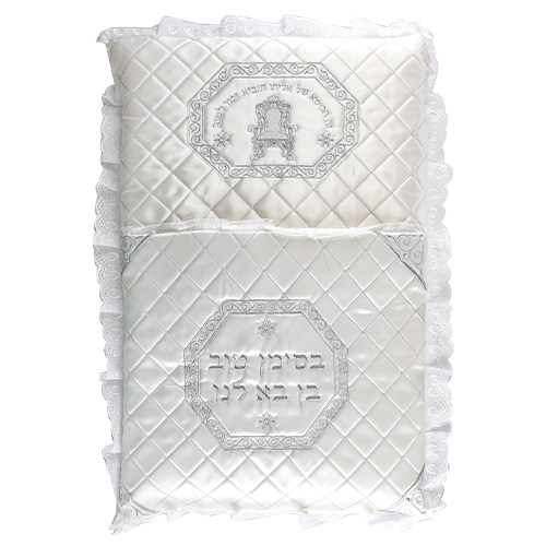 כרית מהודרת לברית מסטן עם דנטל מסביב, "כיסא אליהו" 73X53 ס"מ