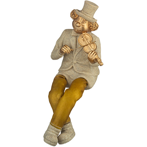 ליצן יושב מפוליריזן עם רגלי בד כסף מנגן בכינור