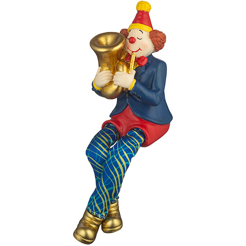 Polyresin Clown Figurine with Cloth Legs 25 cm- Trombone Player
