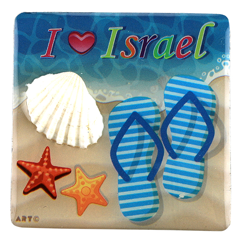 / מגנט אפוקסי עם צדף I LOVE ISRAEL גודל 6×6 ס"מ