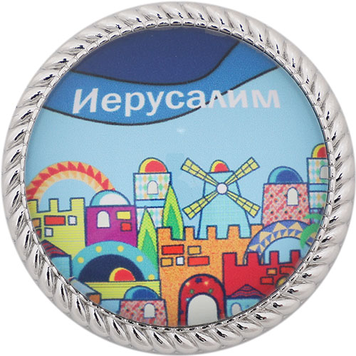 מגנט מתכת עם זכוכית 4 ס"מ "ירושלים" רוסית