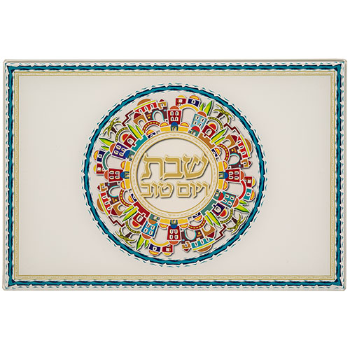 מגש חלה זכוכית עבה בלתי שביר דגם ירושלים 25X37 ס"מ